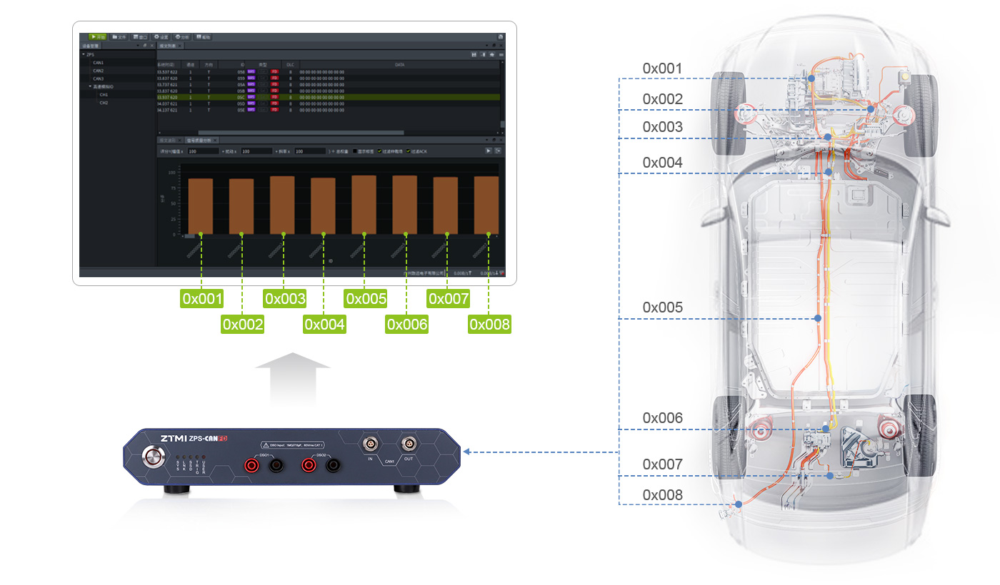 ZPS-CANFD分析儀支持CANFD幀數據按位干擾能力,能最大限度模擬總線擾動情況,提供控制器層面上的一致性測試能力。