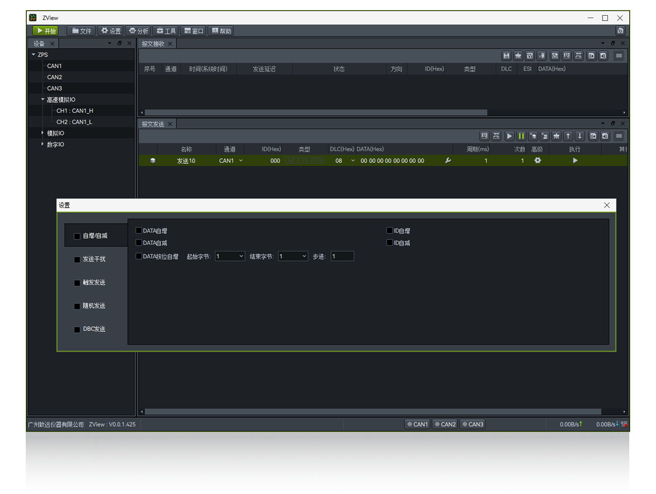 支持立即、周期和條件發送功能,可便捷地構建總線通信測試任務