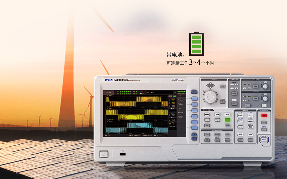 許多太陽能光伏發電站與風力發電站都處在偏遠的山區或者屋頂,條件惡劣,許多時候連供電都是難題,這就需要功率分析儀在測試準確的前提下,還需要更便攜,PA2000mini功率分析儀體積小,帶電池,可連續工作3~4個小時,非常適合光伏風電現場驗收環境。