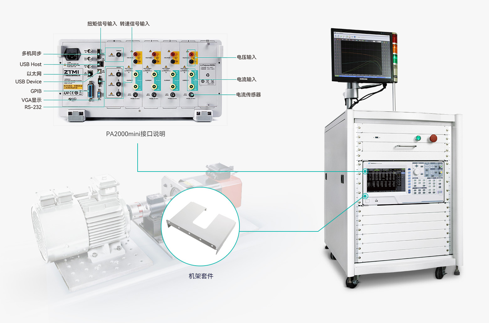 PA2000mini功率分析儀致力于為您提供方便的測試體驗,4通道0.05%精度的功率測量板卡加上電機測試板卡,可輕松完成大部分的日常測量應用,標配的多種協議接口配合上機架套件可更方便進行系統集成。