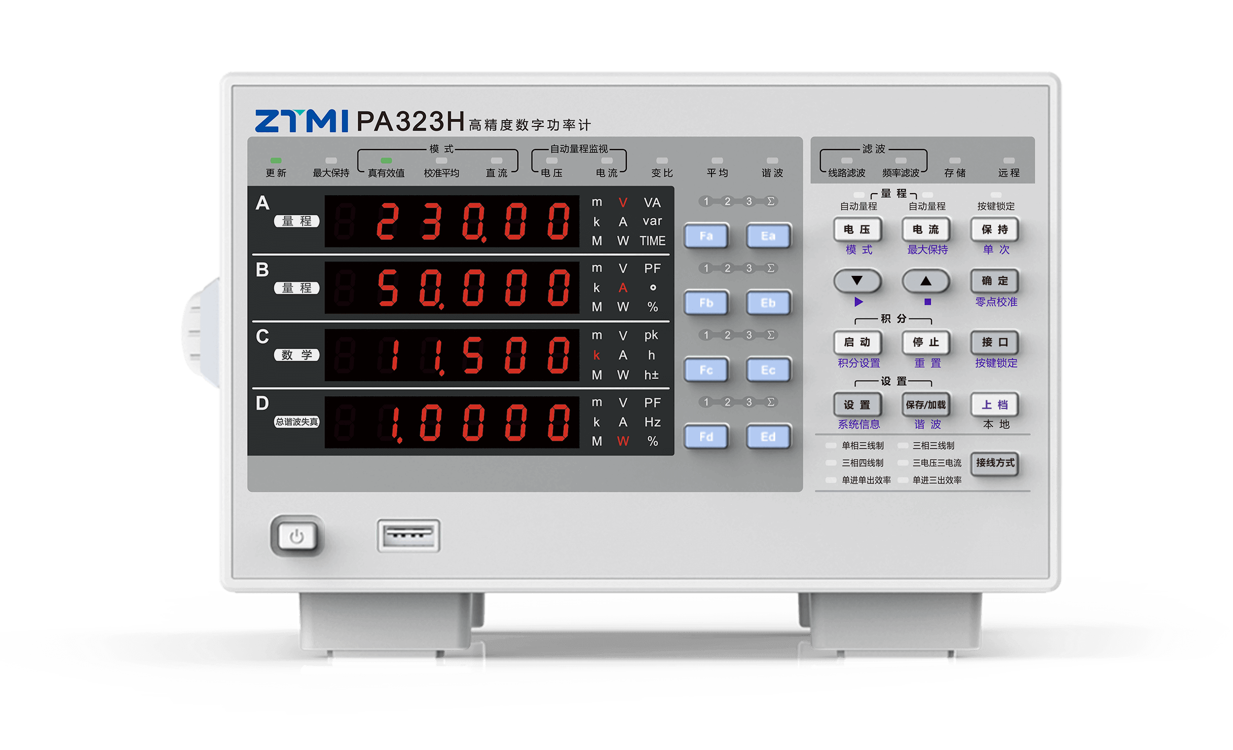 通訊接口是數據通訊的硬件基礎。PA300系列功率計標配LAN、GPIB、RS-232和USB Device接口,兼容SCPI、Modbus兩種通訊指令,保證了測試設備在自動化產線測試的系統集成中具備良好的兼容性。