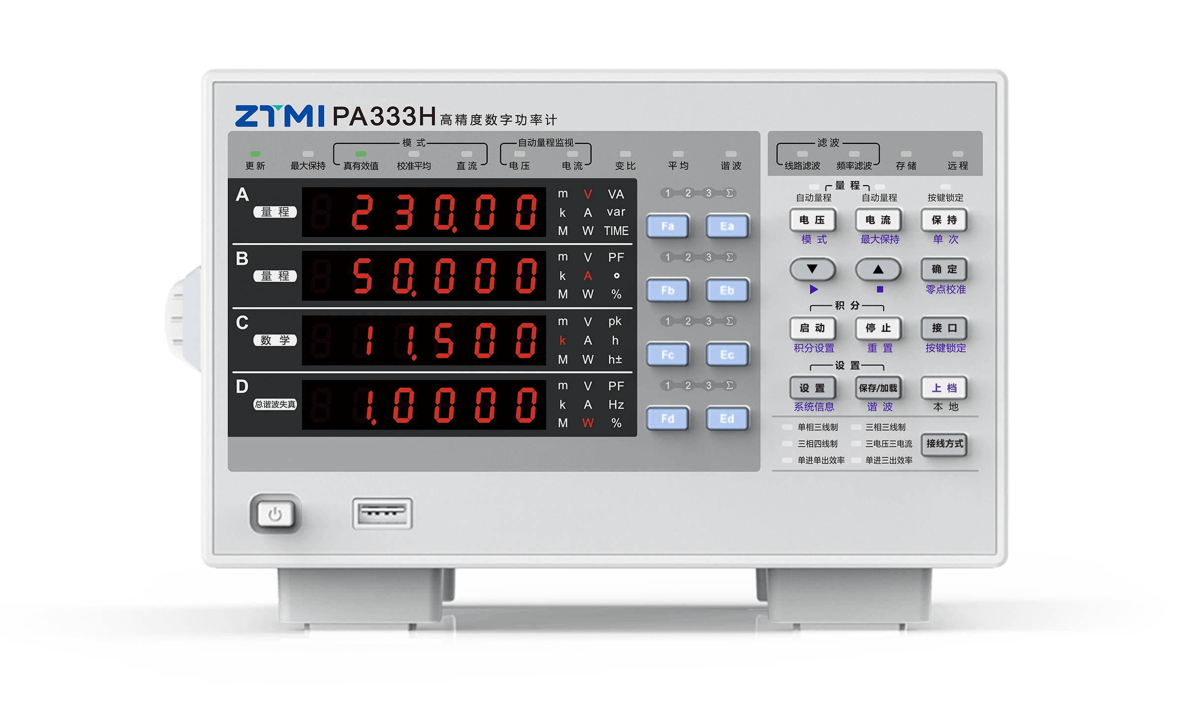 PA333H系列數(shù)字功率計(jì)具有高至200KS/s的采樣率和300KHz的帶寬,能夠測量頻率較高的信號,滿足變頻家電、開關(guān)電源等新技術(shù)產(chǎn)品的功耗測量。