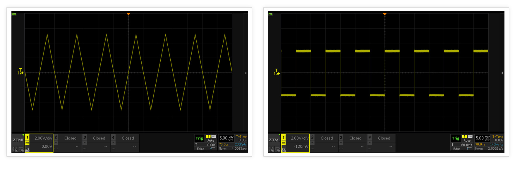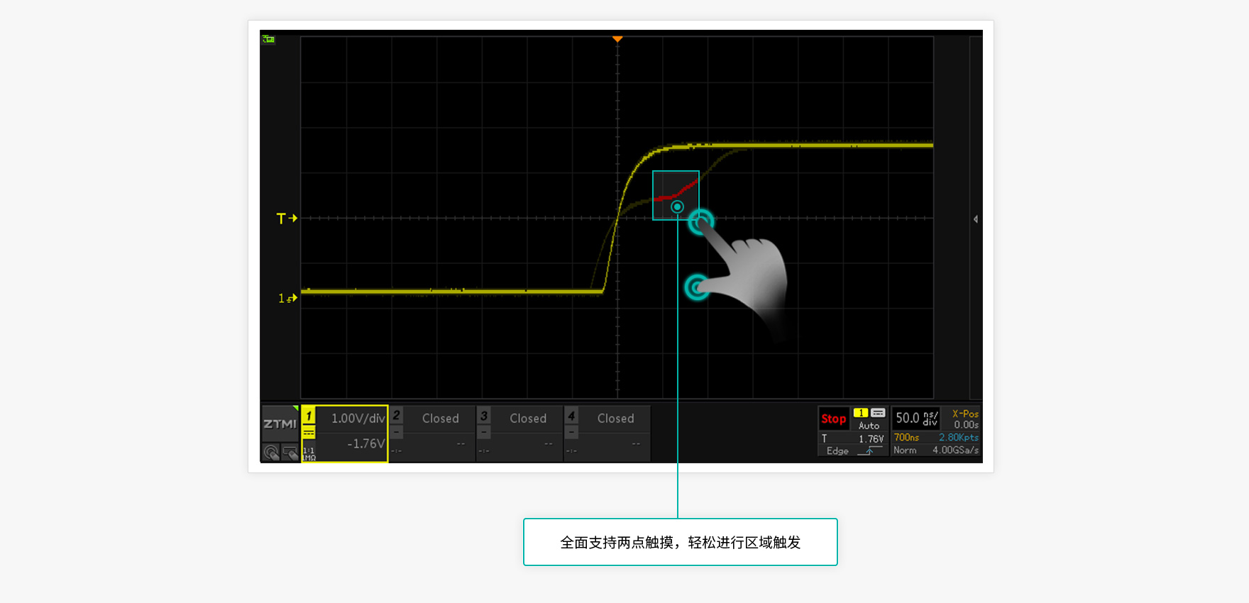 示波器波形刷新率越高,死區時間就越短,可以更快發現偶發性的異常信號。ZDS5054Pro示波器突破100萬次/秒波形刷新率,讓工程師快速發現異常信號。