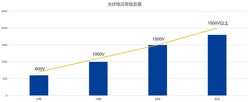 光伏行業有一個清晰的發展脈絡:發電站直流側的電壓等級持續提升。早期600V的逆變器最高直流電壓成為歷史,1000V系統曾經是主流,現在1500V系統逐漸占據主導地位。這種升級并非偶然,而是追求更高發電效率和更低系統成本的必然結果。