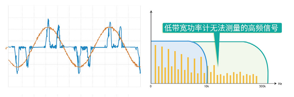 1、波形畸變問題:變頻設備產生的非正弦信號(脈沖波、三角波、矩形波等)含有豐富的高頻諧波分量,普通功率計因采樣率和帶寬限制無法準確測量。