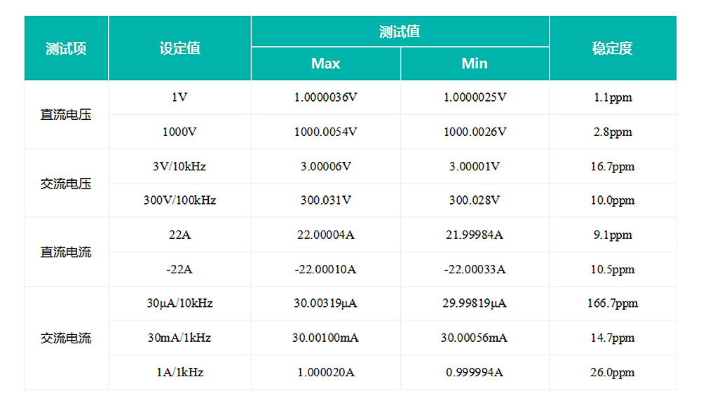 下表是ZMC多功能標(biāo)準(zhǔn)源穩(wěn)定性測試數(shù)據(jù):