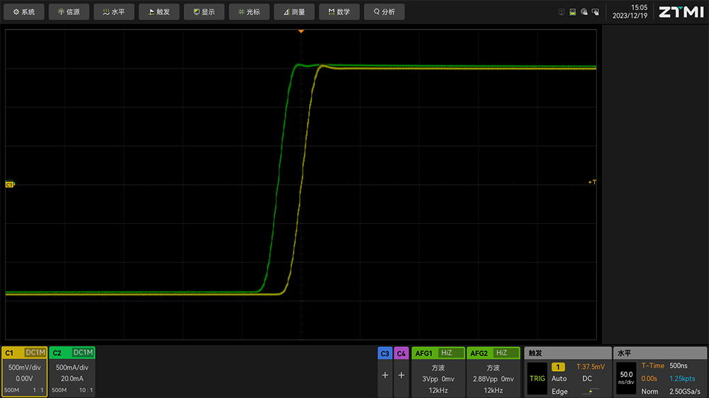 ZUS6000系列本身采用了12bit的ADC,采樣率高達5GSa/s,測量帶寬可以支持1GHz,其測量精度可以達到0.5%,并且有足夠的帶寬保證,因此可以保證ZUS6000在無線充電頻率段的信號準確測量。