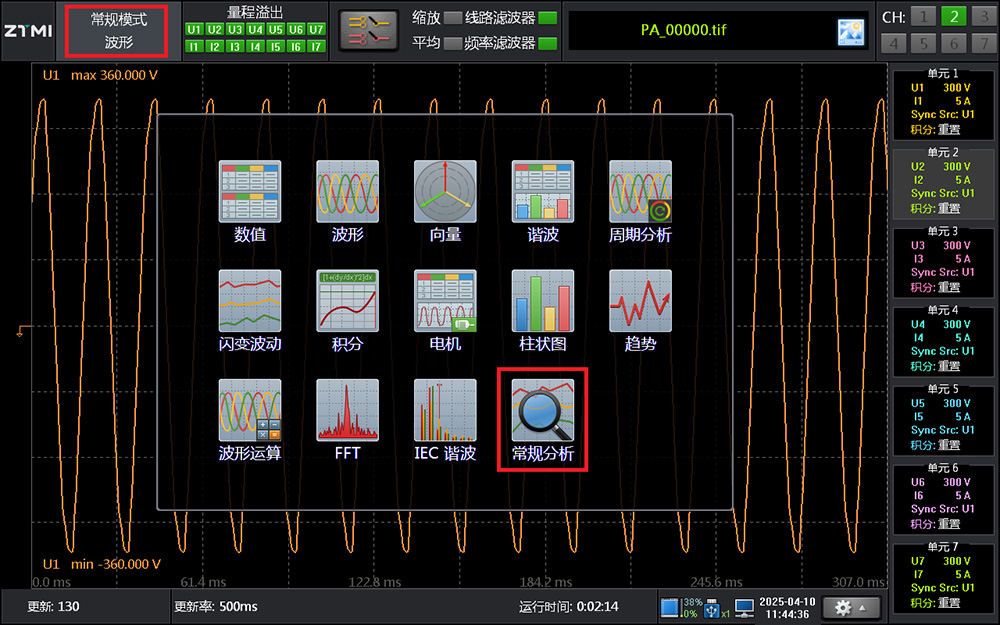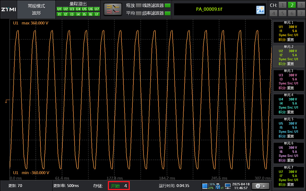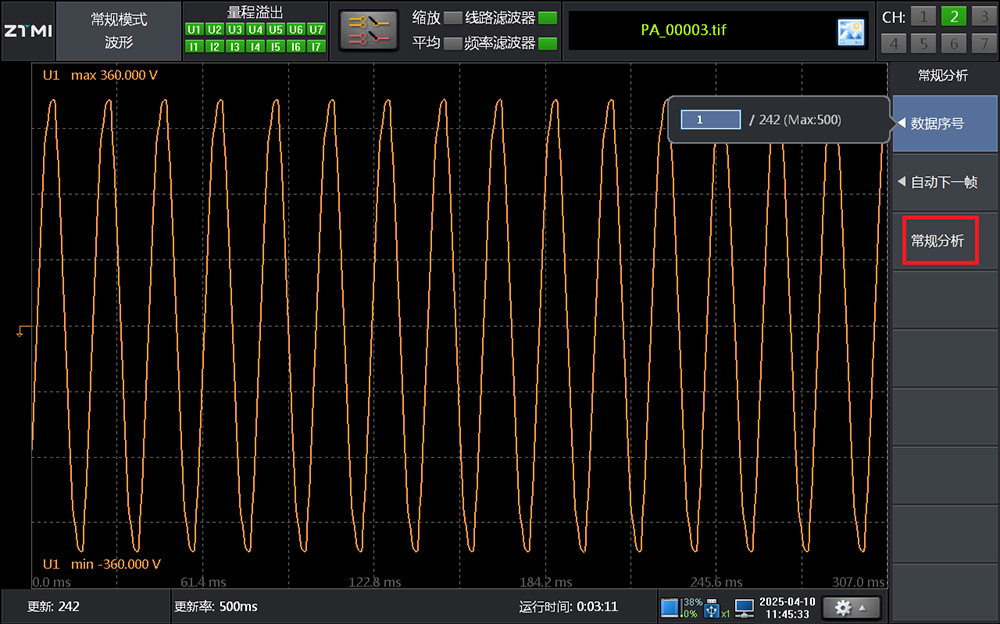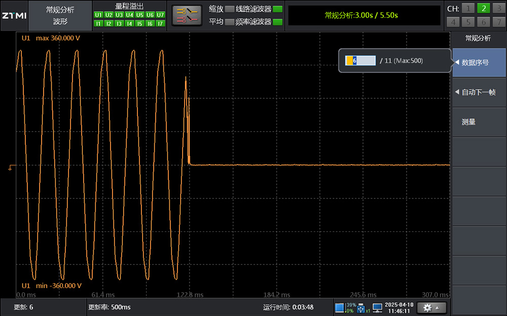 電氣測試中時常會遇到偶發的異常波形,這些波形往往在快速刷新后消失,無法再次觀察。針對這一難題,PA系列功率分析儀提供常規分析功能,在未主動開啟波形記錄的情況下,能通過簡單操作回溯查看: