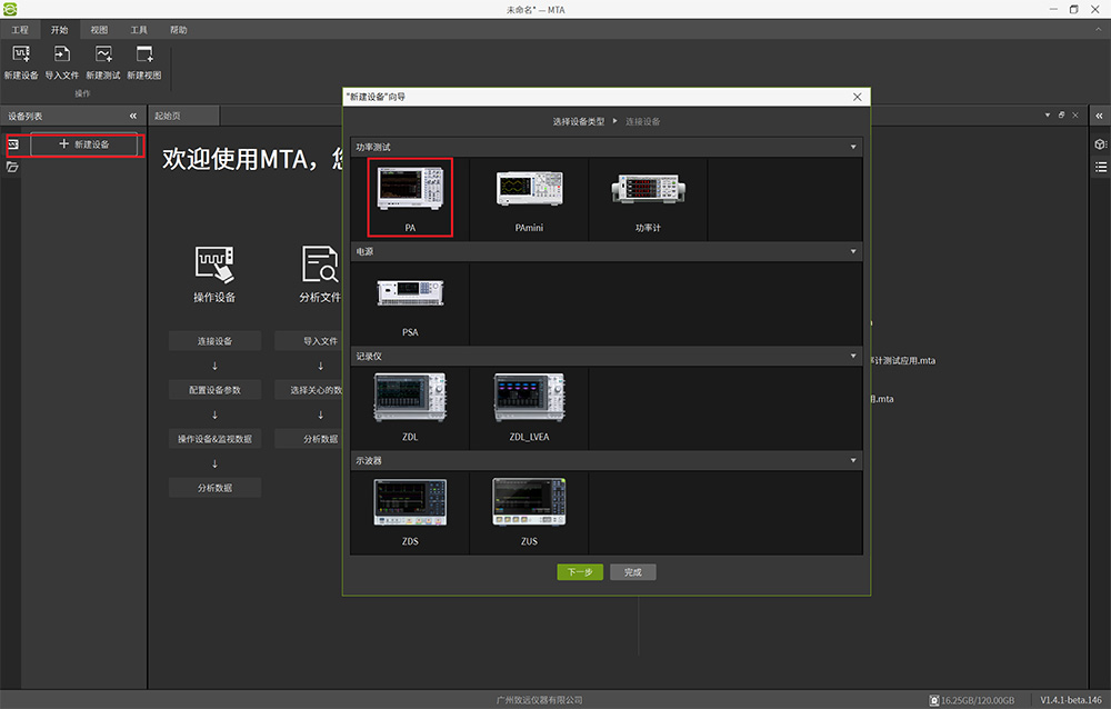 1、打開MTA軟件,通過"新建PA設備"功能連接功率分析儀(圖10所示)。