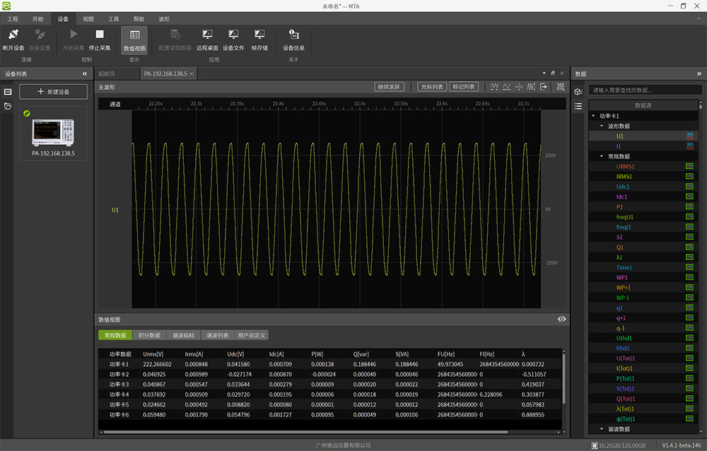 這種方式可以突破儀器本身存儲容量的限制,只要PC硬盤空間充足,可無限時長記錄。通過在線記錄的方式,可以將PA功率分析儀轉變成一臺錄波儀使用。