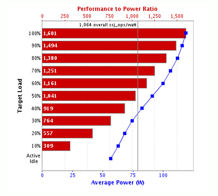 SPECpower?是由SPEC(標準性能評估組織)開發(fā)的一種性能/功耗比基準測試工具,是一套標準化的軟件測試腳本,通過模擬從100%滿載到活動空閑(Active Idle)狀態(tài)共11個不同負載點,來全面測量服務器的性能和功耗,最終計算出一個核心指標:ssj_ops/watt(每瓦特支持的業(yè)務處理量)。