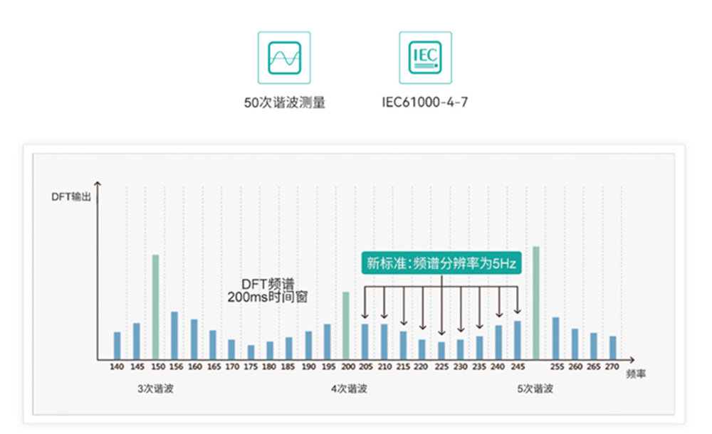 ● 標(biāo)準(zhǔn)諧波測(cè)量: 符合 IEC 61000-4-7 國(guó)際標(biāo)準(zhǔn),支持至50次諧波測(cè)量。通過(guò)對(duì)比諧波分量限值,協(xié)助工程師解決電能質(zhì)量達(dá)標(biāo)難題。