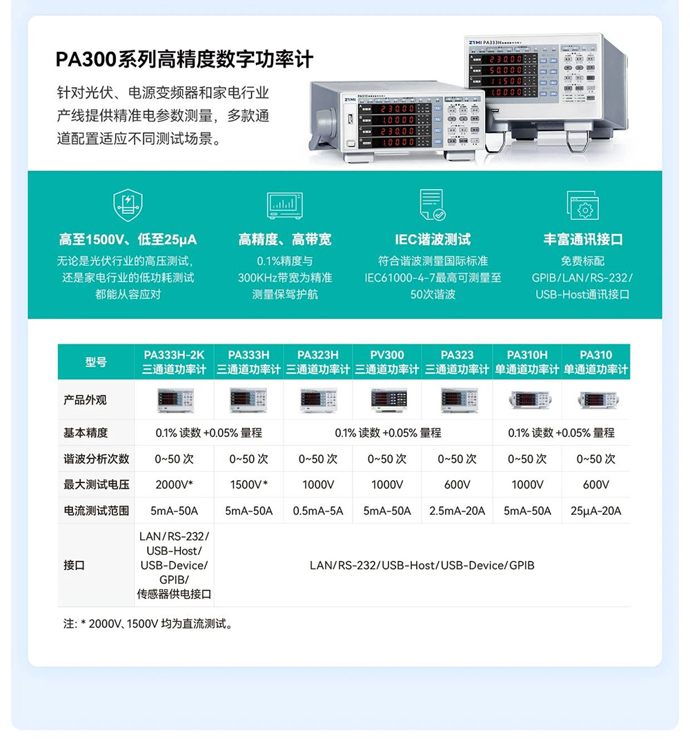 為了應(yīng)對(duì)高頻率、非正弦波等復(fù)雜測(cè)試場(chǎng)景,PA300系列功率計(jì)提供以下關(guān)鍵指標(biāo)支撐: